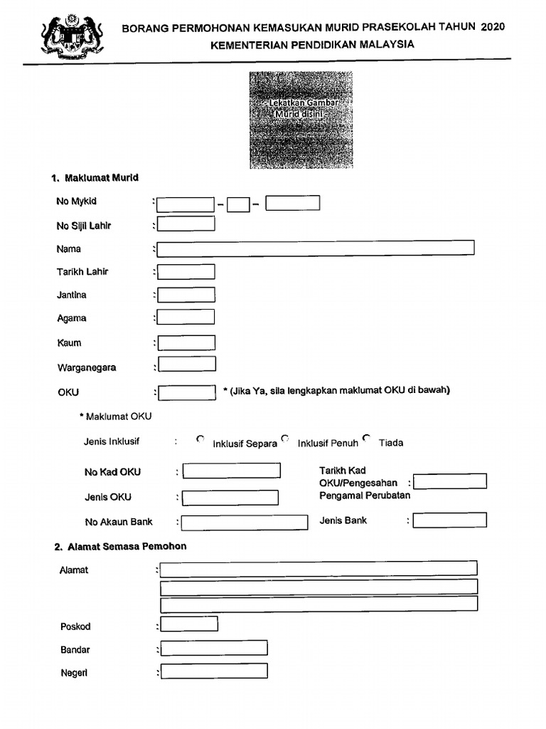 Borang Permohonan Manual Kemasukan Tahun 2020 Pdf